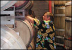 in the cool steel tanks or may be moved to 60-gallon oak barrels.